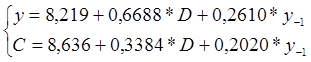 т.е. с ростом величины отечественного производства на 1% размер импорта в среднем по совокупности регионов возрастет на 1,053% при неизменных запасах и потребления семей.
