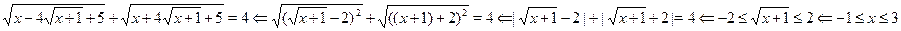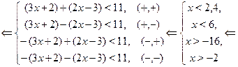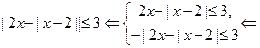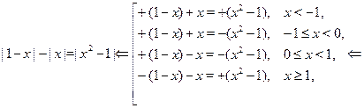 Решать будем это уравнение последовательно ``раскрывая'' модули, начиная с ``внешнего'' и ``приближаясь'' к переменной