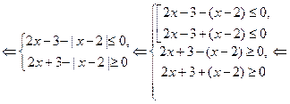 После раскрытия первого модуля, получим совокупность двух уравнений: