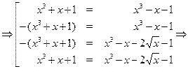 Если решать уравнение путем возведения в квадраты обеих его частей, то получится уравнение