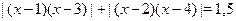 Абсциссы точек пересечения следующие: 1,75; 2,5 и 3,25. Они и будут решениями уравнения.