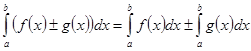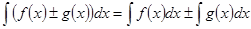 2. Интеграл от алгебраической суммы двух функций равен такой же сумме интегралов от этих функций, то есть