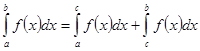 3. Если отрезок интегрирования разбит на части, то интеграл на всем отрезке равен сумме интегралов для каждой из возникших частей, то есть при любых ![]()