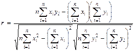 Учитывая (7)–(13) получим следующие формулы для расчета коэффициента корреляции: