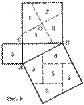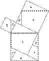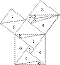 На рисунке квадраты, построенные на катетах, размещены ступенями один рядом с другим. Эту фигуру, которая встречается в доказательствах, датируемых не позднее, чем 9 столетием н. э., индусы называли "стулом невесты". Способ построения квадрата со стороной, равной гипотенузе, ясен из чертежа. Общая часть двух квадратов, построенных на катетах, и квадрата, построенного на гипотенузе, - неправильный заштрихованный пятиугольник 5. Присоединив к нему треугольники 1 и 2, получим оба квадрата, построенные на катетах; если же заменить треугольники 1 и 2 равными им треугольниками 3 и 4, то получим квадрат, построенный на гипотенузе. На рисунках ниже изображены два различных расположения близких к тому, которое дается на первом рисунке.