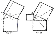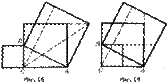 Существует много доказательств теоремы Пифагора, проведенных как каждым из описанных методов, так и с помощью сочетания различных методов. Завершая обзор примеров различных доказательств, приведем еще рисунки, иллюстрирующие восемь способов, на которые имеются ссылки в «Началах» Евклида (рис. 16 – 23). На этих рисунках Пифагорова фигура изображена сплошной линией, а дополнительные построения – пунктирной.