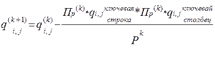 6. В новой симплекс-таблице в столбце базисных неизвестных вместо xi пишется xj. Продолжается заполняться таблица. В столбце с номером j необходимо получить нули(включая строку с целевой функцией). Для этого надо умножить i-ую записанную строку на нужное число и сложить с остальными строками.
