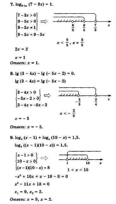 2. 3. 4. 5. 8. 5 11. lg(2 −3 )x + lg(2x + =1) 0 12. lg(x − =6) lg(x 2 − − −5x 14) lg(x − 2) 13. log (116 x x − 2 −18) − log (86 x −36) = 0 14. log (163 − x 2 ) − log (3 x − 4) = log ( 23 − x −1) 15. log 492 x − 6logx 49 +8 = 0 16. 4 0⋅ ,36x −15 0,6⋅ x + 9 = log− x 1 |