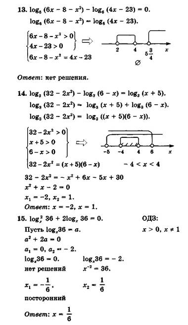 = 12. lg(8− x ) = lg(32 − 4 )x − lg(x + 4) 13. log (66 x −8− x 2 ) − log (46 x − 23) = 0 14. log (323 − 2x 2 ) − log (63 − x ) = log (3 x + 5) 15. log 362 x + 2logx 36 = 0