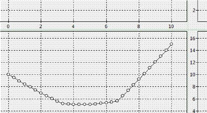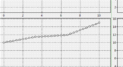 Решим тестовую задачу. Зададим начальные значения: начальная температура по всему цилиндру = 1; температура на левом конце стержня = 10; температура на правом конце стержня = 15; коэфициенты теплопроводности K1=7, K2=35, K3=7.