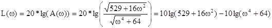 Расчёт значений ЛАЧХ ведём в логарифмическом масштабе. Результаты записываем в таблицу 4. Размерность ЛАЧХ – децибелы (дБ).