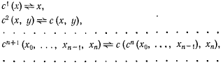 Используя канторовскую функцию с, можно определить последовательность общерекурсивных функций