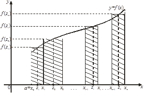 представляет собой сумму площадей прямоугольников, основаниями которых являются частичные отрезки