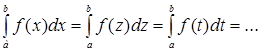Значение определенного интеграла не зависит от обозначения переменной интегрирования: