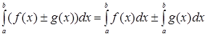 5. Определенный интеграл от алгебраической суммы двух функций равен алгебраической сумме определенных интегралов от этих функций: