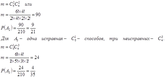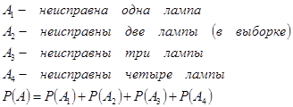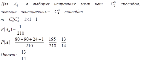 2. Из 10 радиоламп 4 неисправны. Случайно взяты 4 лампы. Найти вероятность того, что среди них окажется хотя бы одна неисправная