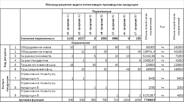 Исходя из решения задачи можно сделать вывод, что для получения максимальной прибыли предприятию необходимо выпускать продукцию в следующих объемах: