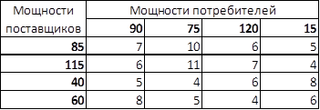 которая имеет бесконечное множество решений. Для нахождения частного решения системы одному из потенциалов (обычно тому, которому соответствует большее число занятых клеток) задают произвольно некоторое значение (чаще нуль). Остальные потенциалы однозначно определяются по формулам: