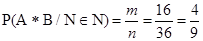 б). Произведение чисел не превосходит N = 8: кол-во благоприятных исходов m = 16