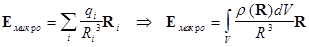 Входящие в выражения для электростатических и магнитостатических полей (9_4) и (9_8) суммы в случае макроскопических заряженных тел содержат очень большое число слагаемых, соответствующих вкладам в поля от точечных зарядов. Их вычисление неудобно с чисто “технической” точки зрения: математическая операция суммирования более трудоемка, чем, например, интегрирование (сказанное относится к аналитическим расчетам, при компьютерном счете суммирование предпочтительнее взятия интегралов, однако в 19 веке подобной альтернативы в математике не существовало). Переход к интегрированию требовал приближенной замены дискретного распределения элементарных зарядов на непрерывное, характеризуемое плотностью электрического заряда