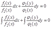 Где f1 (х) и f2 (х) зависят только от х, и f1 (у) и f2 (у), разделим обе части уравнения (1) на f1 (у) и f1 (х) получим