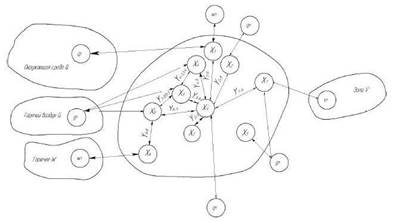 Выделим элементы котла с кипящим слоем (рисунок 2): дозатор Х1 паровой барабан Х2, пароперегреватель Х3, кипятильные трубки Х4, экономайзер Х5, перфорированная решетка Х6, короб Х7, огнеупоры Х8, каркас Х9. представлены в виде окружения со всеми внутренними и внешними связями.