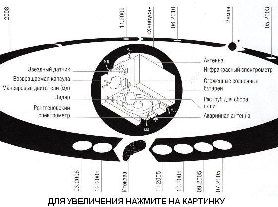 Казалось бы, полное фиаско, но упрямые японцы не привыкли сдаваться. Контакт с «Хаябусой» восстановили через несколько дней по аварийному каналу — периодически включая и выключая передатчик. На помощь японским коллегам пришла сеть дальней космической связи NASA. Ее мощный 70-метровый радиотелескоп позволил в несколько раз поднять скорость обмена информацией. Так, по одному биту, можно сказать, морзянкой, на борт передали новую программу управления ориентацией аппарата с помощью вовсе для этого не предназначенных устройств — нейтрализаторов ионных двигателей.