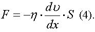 Ньютон доказал, что сила внутреннего трения F пропорциональна площади соприкасающихся слоев жидкости S и градиенту скорости dν/dx: