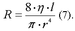 Формула закона Пуазейля упрощается и становится более универсальной при введении вспомогательной величины - гидродинамического сопротивления R, которое для цилиндрической трубки может быть определено по формуле: