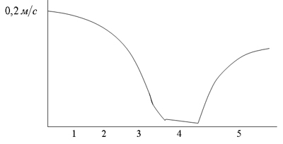 Рис.3. Средняя скорость течения крови в разных отделах кровеносной системы.