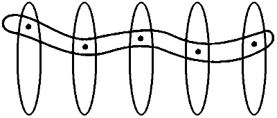 И ещё одна аксиома, с которой было больше всего проблем, потому что в неё сначала не верили. Может быть, вы даже слышали её название — аксиома выбора. Её можно сформулировать многими разными способами, некоторыми — очень сложными, некоторыми — очень простыми. Я сейчас расскажу самый наглядный способ сформулировать аксиому выбора, при котором будет действительно очевидно, что она верна. Пусть у нас есть набор каких-то множеств. Они могут на самом деле быть и пересекающимися между собой, но это не важно — пусть для простоты они пока не пересекающиеся. Тогда мы можем построить произведение всех этих множеств. Что это означает? Элементами этого произведения будут вот такие штуки — мы из каждого возьмём по одному элементу и образуем из них всех одно множество (рис. 4).