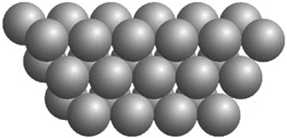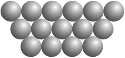А в трёхмерном пространстве как бы вы стали плотно упаковывать шарики? Сначала разложим на плоскости шарики так, как показано на рисунке 6. Потом сверху положим ещё один такой же слой, вдавливая до упора, как показано на рисунке 7. Потом сверху ещё один такой же слой, и так далее.