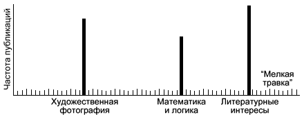 Если изобразить спектрограмму интересов Льюиса Кэрролла, то она будет содержать три пика, причём все они при ближайшем рассмотрении имеют тонкую структуру (рис. 1).