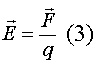 Напряжённость электрического поля E (или просто напряжённость) в любой точке определяется как электрическая сила F, которая действует на положительной заряд q, помещённый в эту точку:
