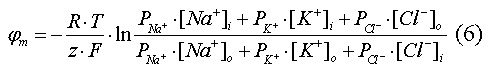 Более точная величина мембранного потенциала покоя может быть вычислена из уравнения Гольдмана-Ходжкина, в котором учитываются концентрации и проницаемость мембраны для трёх основных ионов внутри- и внеклеточной жидкостей: