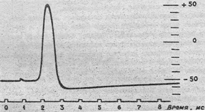 На рис. 1 показан потенциал действия нервной клетки, записанный с помощью микроэлектрода. Если к клетке прикладывают кратковременный электрический стимул, мембранный потенциал уменьшается быстро до нуля. Это отклонение характеризуют как фазу деполяризации. В течение короткого времени внутренняя среда клетки становится электроположительна по отношению к наружней (фаза реверсии мембранного потенциала, или овершут). Затем мембранный потенциал возвращается к уровню мембранного потенциала покоя (этап реполяризации) (рис.2.).