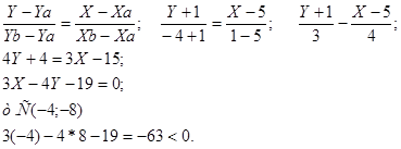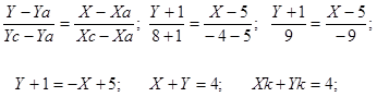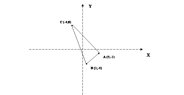 вариант 3: А(5;-1), В(1;-4), С(-4;8).
