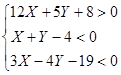 Система неравенств, определяющих множество внутренних точек треугольника.