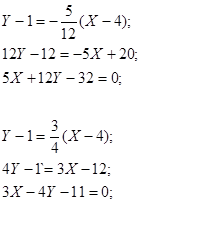 Составить уравнение прямой, проходящей через точку А(4;1) на расстоянии 4 единиц от точки В(-4;0).