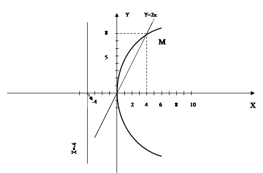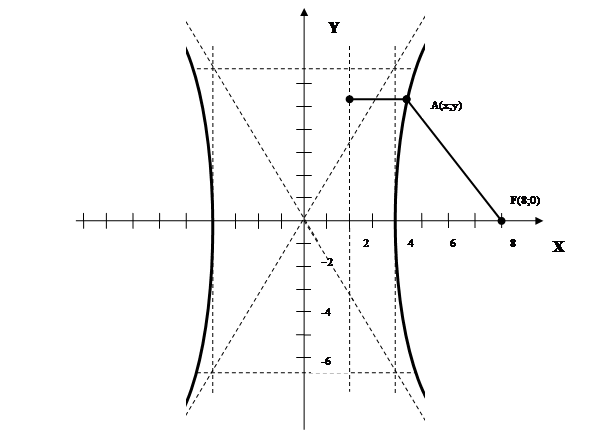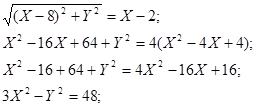 Составить уравнение линии, расстояние каждой точки которой от точки F (8;0) вдвое больше, чем от прямой Х-2=0. Сделать чертеж.