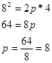 т.к. парабола симметрична относительно ОХ, то уравнение имеет вид