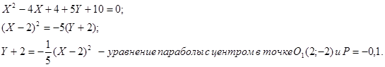 Дано уравнение параболы f ( x ; y )=0. Сделать параллельный перенос осей координат так, чтобы в новой системе координат XO 1 Y уравнение параболы приняло вид X 2 = aY или Y 2 = aX . Построить обе системы координат и параболу.