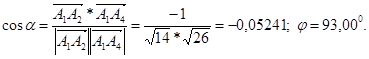 Угол между ребром А1 А2 и гранью А1 А2 А3 :