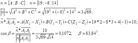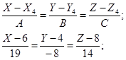 6) уравнение высоты, опущенной из вершины А4 на грань А1 А2 А3 :
