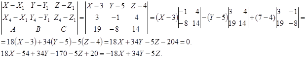 7) Уравнение плоскости, проходящей через высоту пирамиды, опущенной из вершины А4 на грань А1 А2 А3 , и вершину А1 пирамиды.