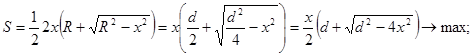 Какова должна быть высота равнобедренного треугольника, вписанного в окружность диаметра d, чтобы площадь треугольника была наибольшей?