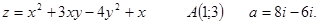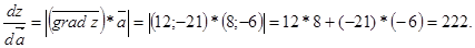 1) grad z в точке А; 2)производную по направлению вектора в точке А.