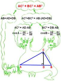 Площади прямоугольных треугольников АОВ, СОА и СОВ равны соответственно ab/2, aс/2 и bс/2. В результате формула (3) приобретает вид