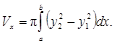 и прямыми x=a, x=b, вращается вокруг оси Ox, то объем тела вращения