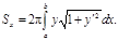 вращается вокруг оси Ox, то площадь поверхности вращения вычисляется по формуле